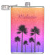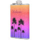 En lätt glamorfärgad liten personlig höftkolv som dekorerats med silhuetterna handflatan träd.