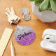 Skapa din egen knapprunda nyckelkedja för stil för att hon ska ha en lyxfaux-grått och lila glitter-gradient. Lägg till ett monogram bakom det angivna namn för att skapa din egen personlig monogrammad design. Personligens text har ett modernt, handskrivet textskript för kalligrafi i stil vid pensel. Anpassa texten och teckensnittet stil i den här designen. För kortare namn finns det utrymme för att öka teckensnittet storlekt. Den glittrande digitala konsten kommer att skrivas ut som ett foto på presenten.