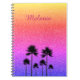 A touch of sparkly glamour on colorful, personalized notebook decorated with palm tree silhouettes.