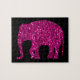 Sparkly shock rosa Elephant faux sparkles jigszons puzzle. Du kan anpassa det svarta pusslet färg! Snygg glamorös shock rosa glansig glitter-gnistor Elephant. Foto av gnistor, inte glitter!