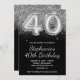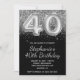 Sparkly Silver Black Balloon 40:e födelsedag Glitt Inbjudningar