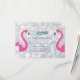 Roligt rosa flamingos accentuerar detta trendig Bröllop Response Card mot bakgrund av glatt silver bokeh ljus, skapar perfekten för ett mål, en strand, en hawaiisk, karibisk eller tropiskt bröllop. Koordineringsobjekt finns i Sparkly Flamingo Bröllop-samlingen.