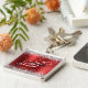 Faux sparkly silver glitter mot en glansig ruterröd, borstad bild av metall. Det går att anpassa kalligrafimonogrammet för svart och vitt finare i mitten. Alla glitter, metaller, gnistra och inslag i denna moderna gigantiska utformning skapas med digital grafik. En mörk och blek röd övertoning, värdefull nyckelkedjepåpa för hennes födelsedag.