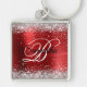 Sparkly Silver Glitter Girly Red Foil Monogram Fyrkantig Silverfärgad Nyckelring