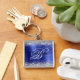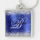 Sparkly Silver Glitter Sapphire Blue Foil Monogram Fyrkantig Silverfärgad Nyckelring