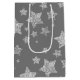 Sparkly Silver Stars jul helgdagar mönster grått Gift Bag . Svårt julklappningsutrustning för nyårsefterkommet tillfälle. Fina silver grått glitter-stjärnor stjärnor mönster på anpassade grått. Vi använda Foto av sparkles glitter!