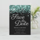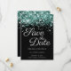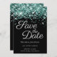 Sparkly Teal Glitter Black Elegant Calligraphy Spara Datumet