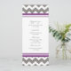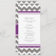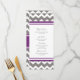 Menyn för bröllopmiddagen i eleganta mörka auberginelilor, grå färg och vit med det roliga retro sparresicksackmönster, anpassade med ditt specificerar och tillgängligt, i att matcha bröllopprodukter.