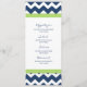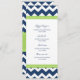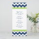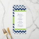 Menyn för bröllopmiddagen i elegant mörk marinblå ljus limefruktgrönt och vit med det roliga retro sparresicksackmönster, anpassade med ditt specificerar och tillgängligt, i att matcha bröllopprodukter.