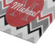Denna sparredesign tonar in av rött, grå färg, och svarten har ett rött att cirkla med vit syr mönster. Skräddarsy med ditt namn och märka med sina initialer. En samtida design, som ska, ljusnar upp någon persons dag.