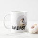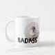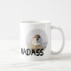 Ett foto av en liten men ganska aggressiv tittar på en sparv och en text Badass. Det här är verkligen som en bråkmakare. Fint kaffe mugg.