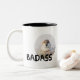 Ett foto av en liten men ganska aggressiv tittar på en sparv och en text Badass. Det här är verkligen som en bråkmakare. Fint kaffe mugg för vem som helst
