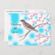 Sparrow i Cherry Blommar Träd Himmel Postcard Vykort