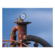 Sparrow sitta bakom mätaren och ovanpå ett rött och rostigt gammalt maskin som används för att kontrollera luft tryck på tidigt kväll.