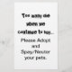 För många dör...adoptera flygblad/neuter: Överbefolkning av sällskapsdjur är ett allvarligt problem i hela världen. Bryter det ditt hjärta att se hundar, katter och andra djur som föds upp och säljs i djuraffärer när det finns så många husdjur som behöver hem? Bryter det ditt hjärta när man ser oönskade valpar och kattungar som fötts på grund av människor som inte ville bry sig om att få mamma och pappa hundar, katter och andra djur som spyts och kastrerats? Den här designen är till dig! Texten är "För många dör när vi fortsätter att köpa.." Anta och spola/Neuter dina sällskapsdjur."