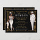 Underbart 1920:s afrikanska svarta, svarta, flapper och en gentelman i ett vitt tre biet kostym och hatt inbjudan dig till en Underbar Gatsby, Roaring 20-tal eller Speakeasy Party eller Harlem Nights party. Söt faux guld Art Deco pekar mot en svart bakgrund. Baksidan har en 1920-bil. Alla formuleringar kan ändras för att passa dina behov. Om du vill göra fler ändringar går du till Anpassa den här mallen. På grund kan du se "Vill du anpassa designen ännu mer? Klicka på EDIT med Design verktyg. Därifrån kan du ändra en del av typsnitt och en del färg, flytta sak runt eller ta bort det du behöver. Lite midjourney-generativent tillsammans med hand plockade inslag.