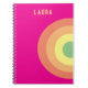 present anteckningsbok kul regnbåge rosa, röda, persikofärgade gåvor anteckningsbok i modern trendig minimalistisk stil med namn mål blå, röd, persika, gul, teal.