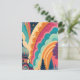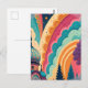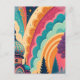 Det här anpassningsbara vykortet har en djärv, fullfärgsbild av en originalfantasiillustration – som framhäver en majestätisk kupol, stiliserade skogssilhuetter och virvlande pastellvågor i levande nyanser av teal, korall, plommon och saffran. Den här kompositionen zoomar in på färg, form och känsla och erbjuder en mer abstrakt, konstnärlig estetik som är idealisk för kreativ kommunikation, förpackningar och evenemang.