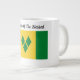 Visningarna mugg med de tre diamanterna i mitten ligger vid färgen av Saint Vincent och Grenadinerna. Finns i dimensioner på 11 eller 15 uns: 11 uns: 3,2 tum D x 3,8 tum H 15 uns: 3,4 tum D x 4,5 tum H Stark, keramiskt tvätta av bygghandtag rekommenderas; mikrovåg och diskmaskin rekommenderas inte på grund av det speciella, värmekänsliga jackande att ge i mugg dess magi