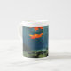Ett ljust orange blad sjunker under ytan på en porlande bäck, med solstrålar som skiner genom vattnet ner till stenarna på botten.
