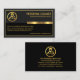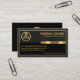 Ett rektangulärt guld gräns kapslar in ett grått och svart lagrar med en guld-flik nära mitten. Att rida på den här framgångsrika fliken i guld är er prestigefyllda namn och arbetstitel med en guld chaufför logotyp som du kan använda på till lämnat. Under allt detta ljuger det svarta lagrar företaget namn, dess kontaktuppgifter och en sloganbeskrivning (som du kan ändra) i det nedre hörnet av högerna. På andra sidan är guld chaufers logotyp i svart täckmantel överst. Detta följs av ert prestigefyllda namn, kontaktuppgifterna och ett sloganalternativ. Alla bokstäver är i Faux guld. Ett kort för underbar professionell för alla till användan, särskilt för chaufförer. #chauffeur #professionalchauffeur #limo #limoservice #limousine #driver #rideshare #transport ##designateddriver #taxi #taxiforhire #taxidriver #taxiservice #taxicab #zazzlemade