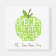 En magnet för speciella lärare med en illustration av ett äpple med grönt med en brun stjälk och två gröntar löv överst. Den vita texten på äpple lyder "SPECIELL UTBILDNINGSTEACHER". Anpassa med ditt namn i brunt.