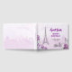 Be dina gäster logga in med den här söt lila gästgästen bok perfekt för en speciell händelse i Paris. Eiffel Torn omges av vackra lilor med en Parisian skyline silhouette i bakgrunden. Använda för ett parisiskt bröllop, sött 16, quinceañera, möhippa, babydusch, födelsedagsfest, förlovningsfest, bröllop eller andra chic tillfälle. Tillgängligt med matchande artiklar.