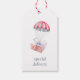 Söta märkre med vattenfärgade presenter har en omsluten present flytande nere på ett rött och vitt fallskärm, med "speciell leverans" under. Märkre går tillbaka till mönster av vintage biplan och fallskärm med utrymme för hand för att skriva presentdonatorn och mottagarens namn.