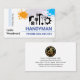 Ett helt vitt hölje har en färgskiva som har ett motiv för handymannen som du kan använda. Bara under detta finns "HANDYMANNEN" i namn och kontaktuppgifter. Till lämnad ljuger du ditt prestigefyllda namn och ett sloganbildsalternativ som hålls lodrätt. ; Ändra textanmärkningarna till detta till kostym för dina egna tjänstebehov. Överst uppe finns en logotyp för verktyg i guld handyman som du kan använda. Detta följs av er prestigefyllda namn, kontaktinformation och ett sloganalternativ för att publicera dina tjänster. Ett underbart kort för handymans- och byggföretag. #handyman #constuctionhandyman #homerepairentreprenör #building #building #remodeling #handymanTools #buildentreprenader #homerepair #internordesign #generleverantör #zazzlemade
