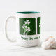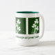 Vita schampor på en säng av irländsk Grönt dekorerar denna två ton 15 oz Mugg för att hjälpa dig att fira St. Patrick's Day. Fyll den till brimen med din favoritdryck, kaffe, te, Irish Whiskey eller en bit av "spriten" i din design. Vad du än väljer, så ska du rosta irländarna varje gång du tar ett sipp från hans stiliga mugg.