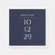 Elegant napkin med ditt speciella datum och namn i modern typografi på marin blå bakgrund. Designad av Thisisnotme©