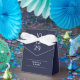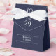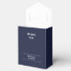 Elegant bröllop-affär med ditt speciella datum och namn i modern typografi på marin blå bakgrund. Du kan anpassa dig med ditt eget tackmeddelande under locket. Ett perfekt sätt att tacka gästerna! Designad av Thisisnotme©