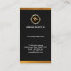 Den samma designen dem kommas med till baksidaen av kortet. Upptill är den valfria logotypen som följs av affärsnamn, specificerar kontakten och ett alternativ för din slogan-tagline. Ett underbart kort för huvud av affärer eller någon som är partiskt till guld och eventuellt färgsvarten.
