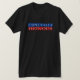 Svart skjorta med texten "som speciellt är heinous" i vit med en blått och rött glöd bak det.