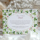 Ge dina gäster all finare information med det här vackra och visuella kortet. Det här kortet har en romantisk vattenfärg gräns med lyckliga schampon, söta rosor och känsliga viner, och passar perfekt ihop med vår fantastiska bröllop-svit. Informationen presenteras elegant i en faux guld-prickad oval, vilket ger ett vackert sätt att bröllop webbplats, bostadsinformation eller vägbeskrivningar. Det är ett charmerande och praktiskt tillägg för en romantisk, trädgård eller ett irländskt temat bröllop.