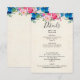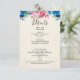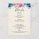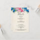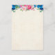 Kort för djurutrymme i bröllop med ett botaniskt gräns med rosa ros och peonier och blå pansier. Bakgrund är en faux-parchment-bild. Färgstark och ljusstark. Skitsam och summerös.