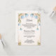 din bröllopsdag med tidlös charm och stil. Det här Art nouveau-inspirerade inmatningskortet har ett fantastiskt gyllene gräns och delikata accenter för blommigt, vilket ger en mjuk vintage elegans till din svit. Oavsett om du delar logialternativ, riktlinjer för klänningskoder, tips för transport eller din bröllop-webbplats gör den här vertikalt orienterade designen den enkel och förfinad. Finns i tre färg: blå, gult, rosa. Du kan välja den palett som bäst kompletterar ditt tema. Det här informationskortet är designat att samordna sömlöst med inbjudan och OSA kort.