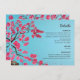 Romantisk rosa cherry blommar träd fullt av blommor och petaler som blåser i luft. Målad i vattenfärg som en typ av teckning. Detta är en modern designad inbjudan med skript och kombinationstext i mörk grått. (färg är anpassade). Bakgrunden har en lätt övertoning av papper struktur och blå färg.