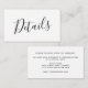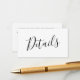 Svart skriptkalligrafi med Bröllop-detaljkopplingskort för de senaste detaljerna på din stora dag. En enkel design som passar dina bröllopsinbjudningar. Finns även i svart bakgrund. Tryck på 'anpassa ytterligare' om du vill justera teckensnittet storlekt vid behov.