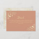 Förbättra din bröllop elegans genom att få ditt minneskort Terracotta Bröllop. Det här kortet, som är förberett med ömtåliga gyldade guld blommigt snöre, utstrålar modern sofistikering och tidlös charm. Det enkla kalligrafskriptet presenter är ett bra exempel på viktiga detaljer som garanterar att dina gäster informeras med stil och tack. Från platsinformation till bostadsinformation tillför det här kortet ett litet förfiningsmoment till alla delar av din speciella dag, vilket anger stadiet för ett oförglömligt firande.