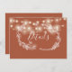 En elegant terracotta bröllop innehåller ett informationskort för bilaga med söt sträng ljus och handdragna blommigtar. Anpassa med speciell information som är angiven i snyggtens typografi. Designad av Thisisnotme©