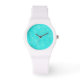 En originell, en-av-ett-slag, dam-sportvakt. Ansikte är ett späckat blått mönster och bandet är vitt kisel. Den är duschsäker och skulle vara underbar för bära av sport, motion eller vardaglig avslappnad.