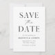Meddela dina kommande påhitt i stil med vår elegant, spara datumkortet i modern tid. Med det här alternativet sparar du datumangivelsen "Spara datum" i svart serif och skript typsnitt med vit bakgrund med subtila svarta fläckar. Anpassa framsidan av datumkortet genom att lägga till information om namn, bröllop, bröllop och andra bröllop. Det minsta sparandet av datumkortet återgår till att ha en vit bakgrund med svarta fläckar. Perfekten sparar datumet för både modernt formellt och avslappnad bröllop!