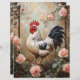 En vackert utförlig oljemålning med en stolt svartvit tupp som står mitt i mjukt rosa ros och orustiskt skapade järn-stängslet. De rikligt texturerade penseldragen och vintagens trädgårdsbakgrund framkallar en tidlös charm på landsbygden, skapar den här perfekten för lantbruksföretagets dekoration, köksaccenter eller blommigt.