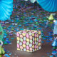 Cute, pastel färgad candy-Påskägg som är dekorerade med spräcker på en flytande chokladbakgrund. Äggen är handmålade i gouache. I roligt är mönster perfekt för barn och vuxnor som kärlek godis behandlar. Anpassa den här designen genom att ändra mönster storlekt eller lägga till någon text för firande i Påsk!