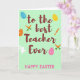 This card features a central message in deep maroon, drawn in flowing lettering that sits slightly raised against a soft mint-green background. Around the words, speckled egg shapes in bright blue, sunny yellow, cheerful orange, and soft pink scatter like confetti, adding a light, friendly mood 🌷. Slender orange carrots with leafy green tops appear between the eggs, gently guiding your eye back toward the main message as if they’re leaning in together. One carrot is arranged as an exclamation mark, giving the layout a cheeky little wink without needing any extra characters. In the lower left, a simple white bunny silhouette 🐰 faces inward, as though watching over the message with a quiet, affectionate presence. Along the bottom edge, a short greeting appears in uppercase letters, set in a strong pink color that stands out from the mint background. The overall scene is framed by the scattered eggs and carrots, with the bunny anchored near the lower left corner and the pink text running neatly across the base.