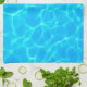 Kökshandduk med ett foto av tydligt blått bassäng vatten, med skakande reflektioner.
