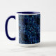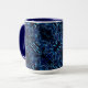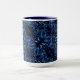 Spegling av formad blomma och fjäril på mörk blått mugg
