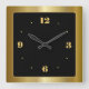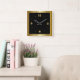 En falsk guldbård med en svart urtavla gör denna klocka ganska dramatisk. Med siffror som matchar skulle denna fyrkantiga klocka vara en bra gåva till en speciell tillställning, till exempel en gyllene bröllopsdag. Anpassa med namn och datum. Finns endast i fyrkantig form.