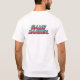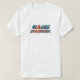 T-shirt-designen har den fetstilta texten "Spelskydd" med flera färgader som är väl synlig över bröstet. Den pulserande färg och den dynamiska typografin skapar en slående visuell påverkan, perfekt för spelare och dem som anammar en konkurrenskraftig anda.